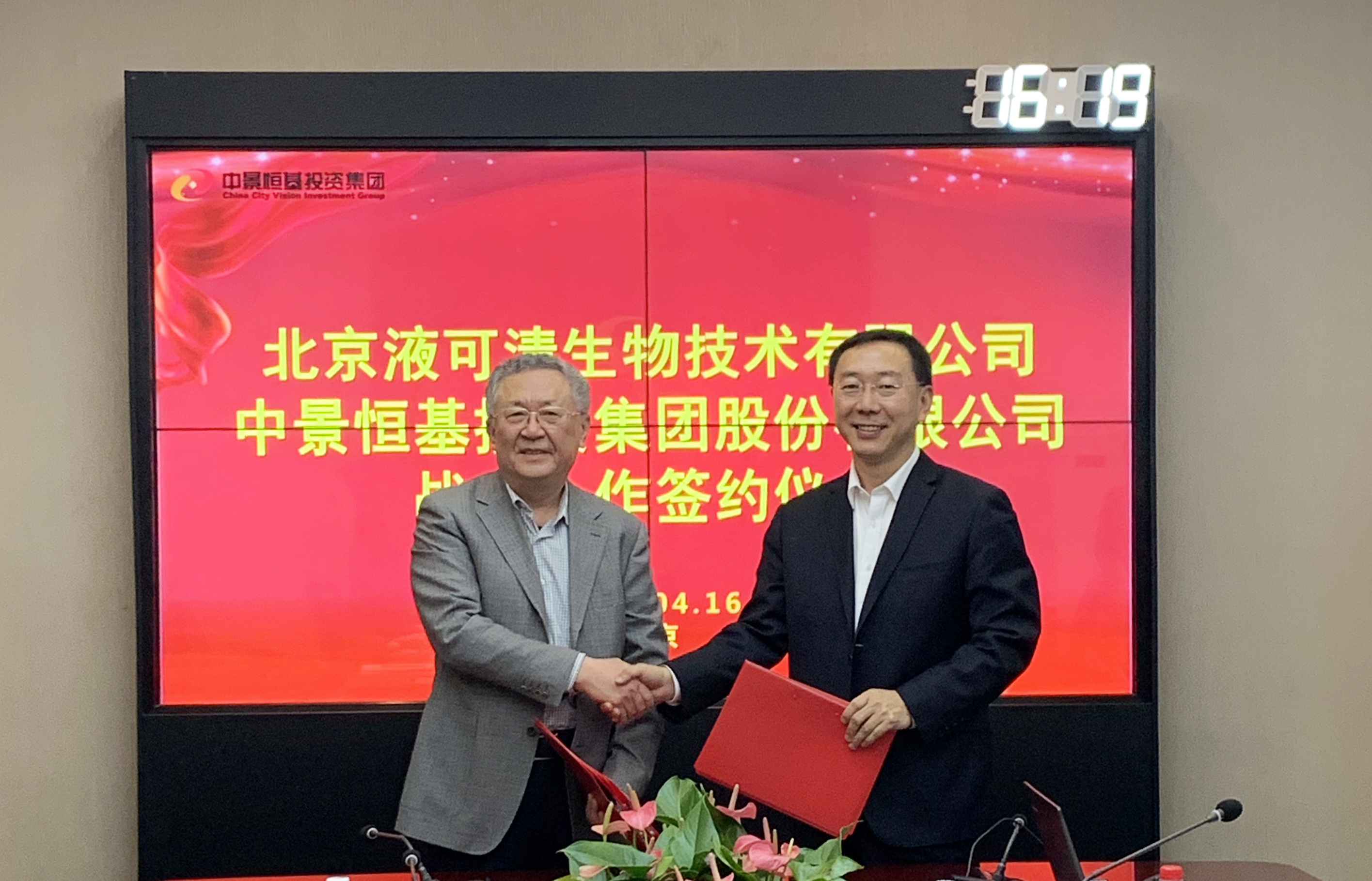 2020年04月16日下午,北京液可清生物技術有限公司與中景恒基投資集團股份有限公司戰(zhàn)略合作簽約儀式在中景恒基投資集團視頻會議室順利舉行。