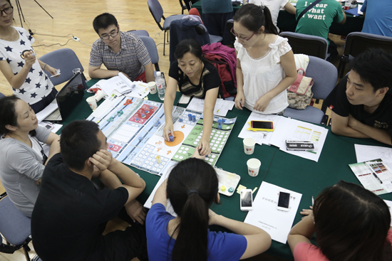 公司團隊及架構(gòu)建立后,汪老師通過引領員工進入一個模擬的競爭性行業(yè),圍繞形象直觀的沙盤教具,實戰(zhàn)演練模擬企業(yè)的經(jīng)營管理與市場競爭。由年初支付所得稅、做新一年計劃、廣告方案制定、更新短貸、更新應付款,到開始新的生產(chǎn)、交付訂單、市場開發(fā),以及年底支付設備維修款、折舊、支付租金或購買設備廠房、年底結(jié)賬等等的一系列操作,強化學員的管理知識和技能,在 經(jīng)歷模擬企業(yè)5年的榮辱成敗過程中提高戰(zhàn)略管理能力,感悟經(jīng)營決策的真諦。