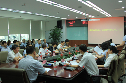 2015年7月15日下午,集團公司于總部會議室召開上半年工作總結(jié)暨表彰大會。董事長兼首席執(zhí)行官肖厚忠出席,會議由高級總裁張睿主持。