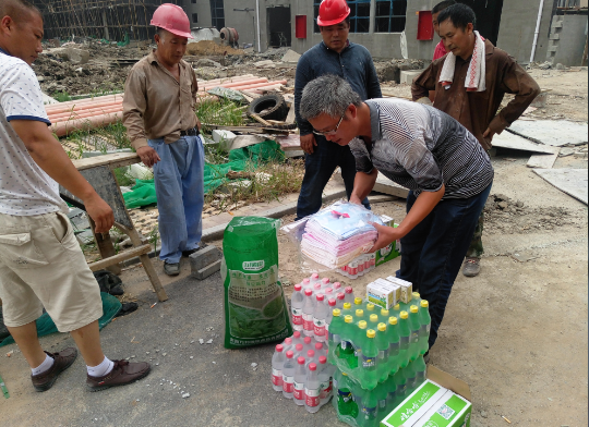 在項目現(xiàn)場,鳳祥銘居公司領導向一線作業(yè)職工送上了清涼用品,并轉達了集團領導的關心問候,對他們付出的辛勤勞動和作出的貢獻表達了敬意與感謝,希望他們在夏季高溫作業(yè)時,注意防暑降溫,合理安排好高溫天氣的工作時間,確保身體健康。特別是要強化露天作業(yè)場所和高溫作業(yè)崗位的安全生產意識,把防暑降溫工作與安全生產相結合,確保鳳祥銘居項目一線職工度過一個安全、清涼的夏季。
