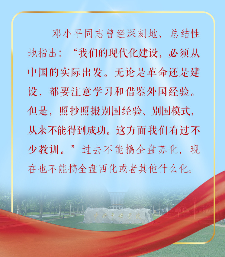 強(qiáng)調(diào)堅(jiān)持和發(fā)展中國(guó)特色社會(huì)主義道路,習(xí)近平引用“風(fēng)景這邊獨(dú)好”;學(xué)習(xí)和借鑒外國(guó)經(jīng)驗(yàn),習(xí)近平提醒千萬(wàn)不能“邯鄲學(xué)步,失其故行”;堅(jiān)持道路自信、理論自信、制度自信,習(xí)近平勉勵(lì)我們真正做到“千磨萬(wàn)擊還堅(jiān)勁,任爾東西南北風(fēng)”。妙語(yǔ)頻出,發(fā)人深省。