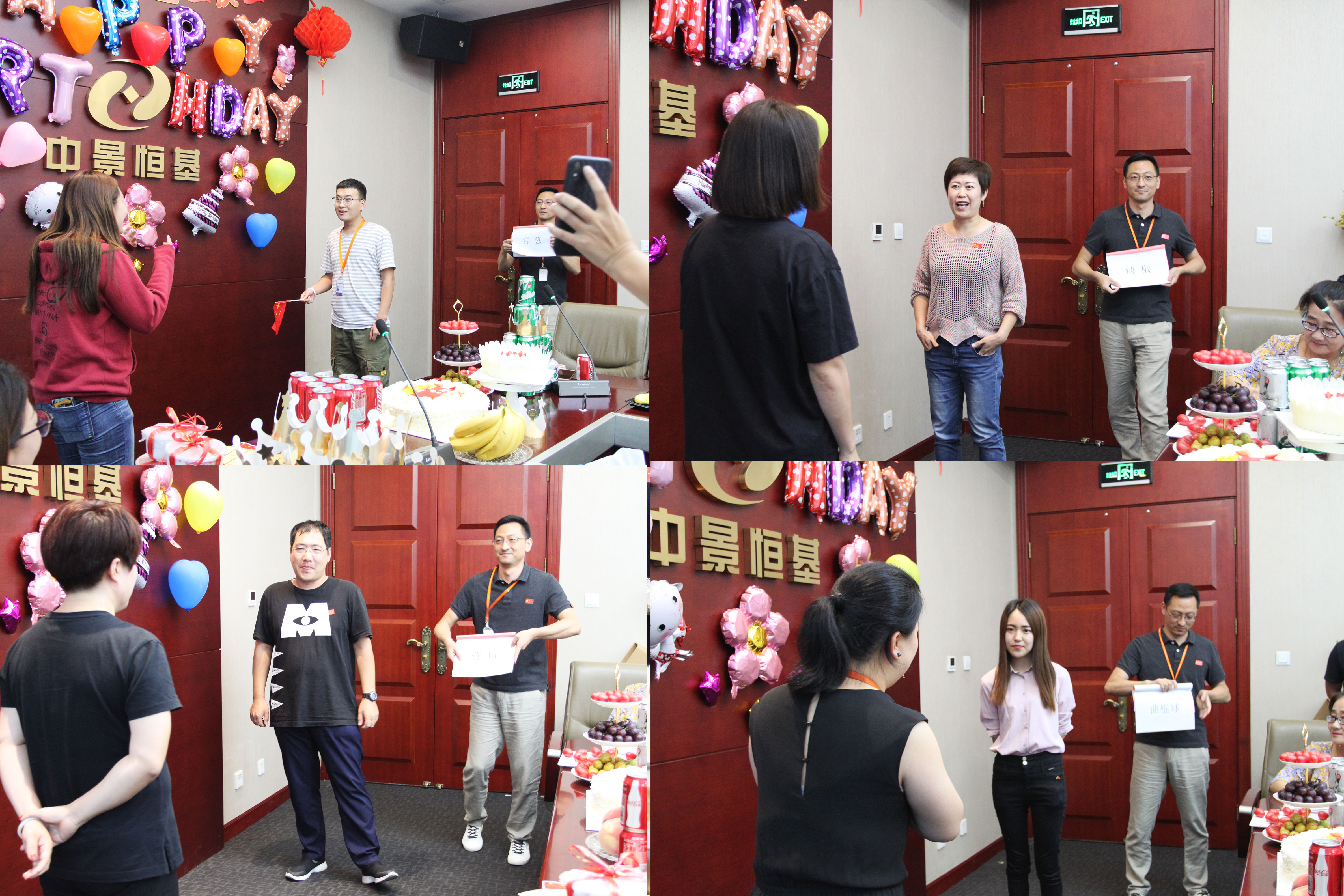 此次生日會(huì)分為壽星(新人)介紹、游戲互動(dòng)、幸福傳遞和為祖國慶生四部分。各位同事在歡聲笑語中增進(jìn)情誼,在游戲中培養(yǎng)默契,在生日燭光的傳遞中互贈(zèng)祝福,短暫的生日會(huì)提升了各部門各團(tuán)隊(duì)的合作精神,游戲參與者們更是收獲了精美的禮物。