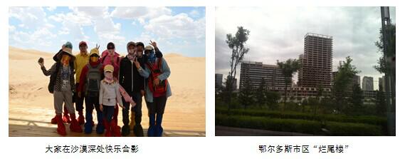 下午,團(tuán)隊(duì)來(lái)到內(nèi)蒙古新興經(jīng)濟(jì)城市鄂爾多斯市。鄂爾多斯為蒙古語(yǔ),意為“眾多的宮帳”。古老的鄂爾多斯草原,因一代天驕的鐘情而聞名于世;資源富集的鄂爾多斯高原,又因能源經(jīng)濟(jì)的崛起而備受矚目。大家在參觀中,對(duì)這個(gè)曾經(jīng)十分落后的原東勝市的現(xiàn)代化崛起而驚嘆,同時(shí)也為近年房地產(chǎn)過(guò)度開(kāi)發(fā)的惡果而惋惜。