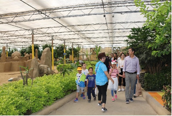 花果山,水簾洞,沙漠探險(xiǎn)等景點(diǎn),園藝結(jié)合著游樂(lè)設(shè)施寓景于樂(lè),很快就將小朋友們活動(dòng)伊始的拘束感和隔閡感一掃而空。對(duì)一切熟悉起來(lái)的孩子們開(kāi)始在園中嬉戲,也為植物園帶來(lái)了別樣的節(jié)日氛圍。而這種氛圍顯然也影響了家長(zhǎng)們。在工作中嚴(yán)肅認(rèn)真的面容逐漸消失了,取而代之的是一張張富有少年感的面龐。工作與生活中的緊張感暫時(shí)被放下,親子同游獨(dú)有的喜悅感慢慢地被展現(xiàn)了出來(lái)。