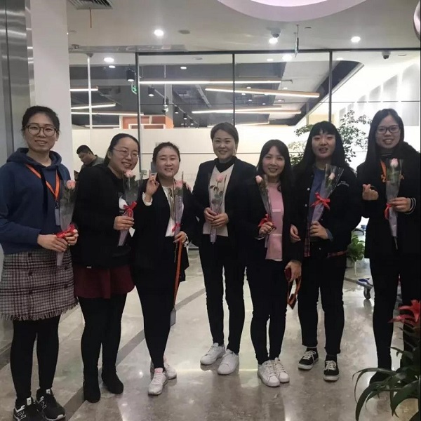 收到祝福的女同事臉上洋溢著幸福的笑容。為了祝福女同事,男同事們也積極做起了送花使者,為女同事們送上衷心的祝福。